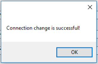Click on Change Hana Connection and the following dialog will be shown to confirm the connection has been changed successfully.