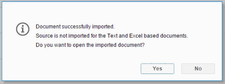 Click on OK to confirm and open SAP Lumira. Go to File|Import and browse to the location where the Lumira document is stored. The following dialog will confirm the import is successful.