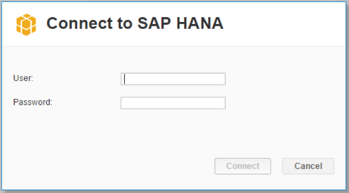 Now you will be prompted to provide you SAP HANA username and password for the specific SAP HANA instance. Please ensure you enter credentials that have the privileges to refresh the datasource (on the used calculation view(s) on SAP HANA). Click on Connect.